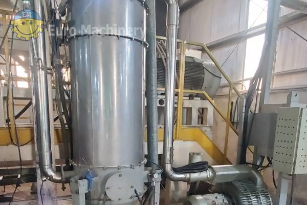 Línea de coextrusión de láminas BANDERA para láminas rígidas ABA para procesar PET, PS, PLA, PP. La coextrusora de láminas Bandera es un sistema de 3 extrusoras que produce una lámina de plástico rígido, muy utilizado en el termoformado y la producción industrial de láminas. Marca y modelo: Bandera Ancho de la hoja:- El troquel T es de 1400 mm