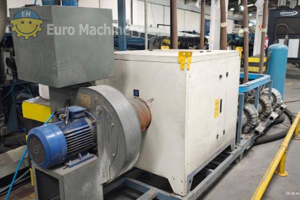 Línea de extrusión de planchas huecas de PP de BAUSANO (MD 158/30) diseñada para producir planchas de hasta 2.200 mm de ancho y 2-6 mm de grosor (hasta 10 mm con cambio de matriz), con una capacidad de 800 kg/h. Incluye extrusora de doble husillo, matriz plana, cambiador hidráulico de mallas, bomba de engranajes, mesa de calibración, unidades de arrastre, horno, tratamiento corona, refrigeración, recorte, unidades de corte y sistema de vacío. Marca y modelo: BAUSANO MD 158/30 Anchura de la hoja: Máx. 2.200 mm Materiales a procesar: PP Espesor del material: Mínimo 2 mm – Máximo 6 mm (preparado para llegar hasta 10 mm con un cambio de matriz ) Producción: PP Hoja hueca hasta 800 kg/hora en 1000 g/m². Extrusoras: Extrusora de doble husillo BAUSANO MD 158/30 Troquel plano: 2.200 mm de ancho Accesorios:- Tolva de acero de secado