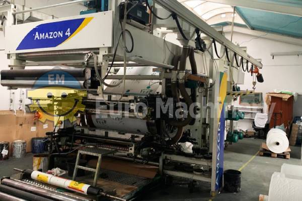 Esta impresora flexográfica de Carnevalli es una máquina de 4 colores con 1400 mm de ancho de impresión para papel y film. Marca y modelo: Carnevalli Amazon 4 Engranaje Número de colores: 4 (4+0, 2+2) Material para imprimir: Película y papel Ancho de impresión: 1400 mm Anchura del material: 560 – 1450 mm Repetición de impresión: 300 – 1200 mm Velocidad mecánica: Hasta 250 m/min Desbobinador y bobinador:- Diámetro máx. del rollo: 600 mm