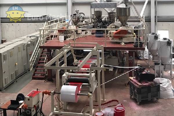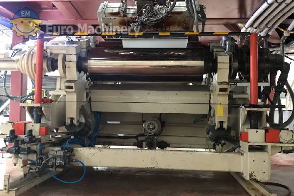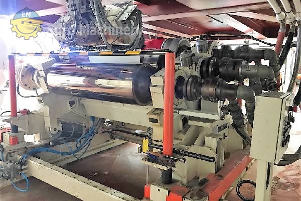 La línea de coextrusión de láminas ER WE PA es un sistema de recubrimiento por extrusión aséptica para procesar PP, EVOH, capaz de procesar láminas de 300 mm a 900 mm de ancho con un grosor de 400 micras a 2 mm. Marca: ER WE PA Anchura de la hoja mín-máx: 300 mm -900 mm Materiales: PP, EVOH Espesor mínimo y máximo del material: De 400 micras a 2 mm Sistema de dosificación: Monocomponente Número de extrusoras: 4 Cambiador de pantalla: sí Bomba de fusión o Bomba de engranajes: Bomba de fusión Bloque de alimentación: 7 capas 2 juegos puede funcionar 3-5-7 capas Cabezal: 2 juegos 1-1000mm 2-400mm Diámetro de la calandra: 500 mm x3 Número de rollos: 3 Posición de balanceo: Cualquier posición posible Refrigeración: 2 juegos Tipo de rebobinador: juego individual de 2 piezas Extrusora de chapa co en buenas condiciones de funcionamiento y se puede ver en producción. Ponte en contacto con nosotros para obtener más información o para programar una inspección.- Me gustaría saber el precio de esta máquina