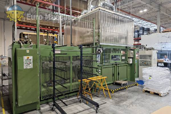 La termoformadora al vacío ILLIG UA 200G es una máquina de procesamiento de chapas con una superficie máxima de conformado de 1950 mm x 950 mm. La termoformadora ILLIG servoaccionada está diseñada para el conformado de alta precisión de láminas de material precortado. Tipo: Termoformado por vacío a presión Marca: ILLIG UA 200G Dimensiones del molde:- Máximo (L × A) 1960 × 980 mm