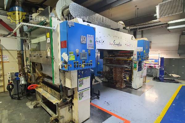 La laminadora Combi de NordMeccanica es una máquina de huecograbado con rodillo/solvente capaz de laminar 1300 mm. Laminadora con una longitud efectiva de rodillo de unos 1400 mm Marca y modelo: Nord Meccanica S Simplex Combi Tipo: Combi Sistema de laminación: Huecograbado en rollo / Base disolvente Ancho de banda: 1300 mm Longitud efectiva del rodillo: ≈ 1350-1400 mm Velocidad mecánica máxima: 300 m/min Velocidad típica de producción: 180 – 250 m/min Zonas del horno de secado: 2 zonas Temperatura máxima de secado: 140 °C Diámetro máximo de desenrollado: 900 mm Rebobinado Diámetro máximo: 900 mm Tipo de eje:- 3″ / 6″