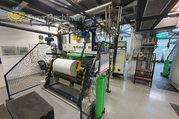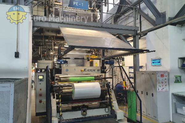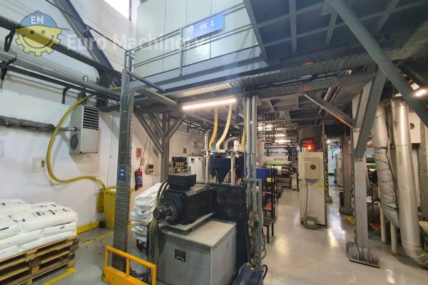 Reifenhäuser Kirion Línea de extrusión monocapa capaz de procesar PE. Extrusora monocapa equipada con un husillo de 100 mm de diámetro y una toma de 1600 mm de ancho. Tipo: REIFENHÄUSER KIRION Materiales a procesar: PE Tipo: Extrusora monocapa Diámetro del tornillo: 100 mm Paso de material:- Despegue 1600 mm de ancho