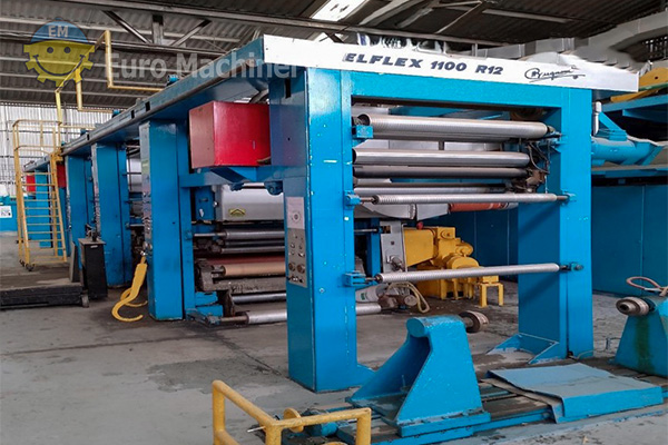 La TECMO Elflex 1100 R12 es una plastificadora versátil diseñada para la impresión flexográfica, el recubrimiento y el gofrado en diversos materiales. Tipo: Impresión flexográfica, recubrimiento y gofrado de aluminio, película, papel Tipo de producción: Impresión flexográfica a 1 color (anverso y reverso), barnizado con base de disolvente en 3 estaciones y 1 unidad de gofrado Ancho de banda: Mín 570 – Máx 1050 mm Carretes:- Diámetro de las bobinas de desbobinado: 650 mm