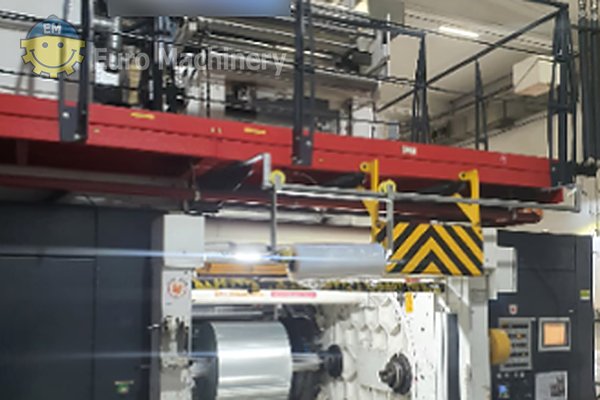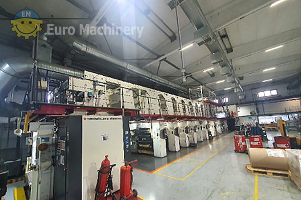 Prensa profesional de huecograbado de 8 colores capaz de procesar materiales de PE, PP, OPP, PET y papel a velocidades de hasta 460 m/min. Dispone de sistemas avanzados de empalme automático, control de banda y detección de fallos para una producción fiable a alta velocidad.
