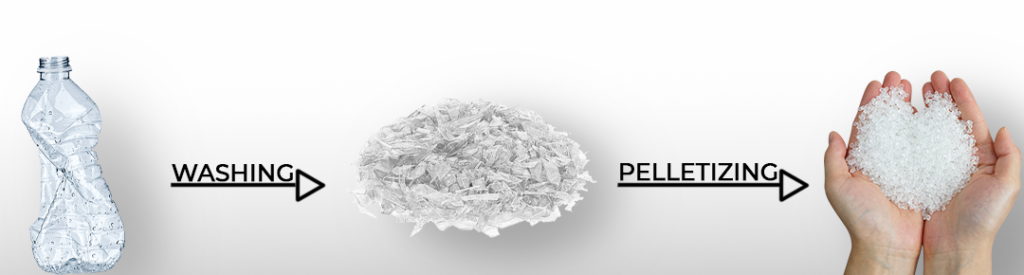 Las resinas de PET que se obtienen de las botellas de plástico se reutilizan en la producción de diversos productos poliméricos. La tecnología de convertir botellas viejas en materia prima nuevamente es de suma importancia. El proceso de reciclaje de botellas PET es el siguiente:
